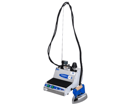Profesjonalny zestaw wytwornicy pary wyposażonej w żelazko. Obudowa może być wykonana ze stali